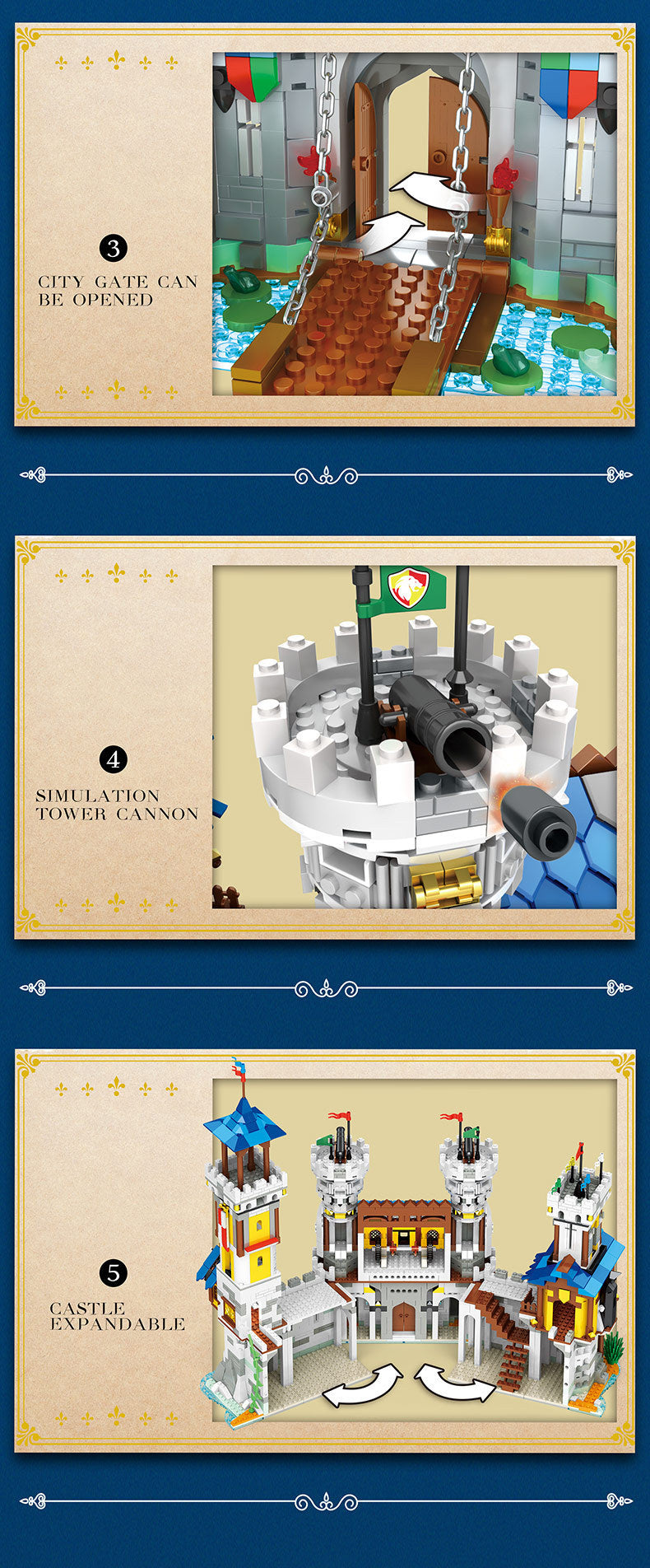 Increase quantity for Rebbrix 66006 Military Medieval Lion Country Castle Building Block City Town 2722PCS Bricks Model Set Toys From China