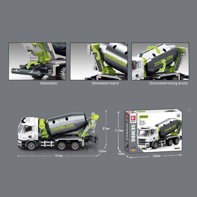 SEMBO 705100 Moc ZOOMLION Concrete Mixer Truck(Without Motor) Building Blocks 222pcs Bricks Toys From China.