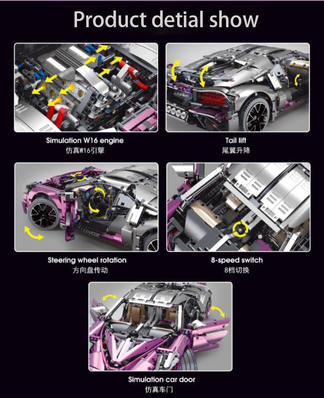Increase quantity for T5004A Bugatti Divo Purple Bugatti Sports Car Model Car Children Assembled Building Block Toy Ship From China.